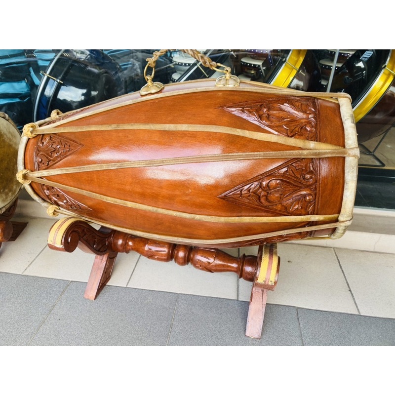 Pada awalnya dimainkan dengan kayu buluh dengan menekan pada string gambar alat muzik. Gendang 'dua muka' yang berukuran besar dan ditakrifkan .